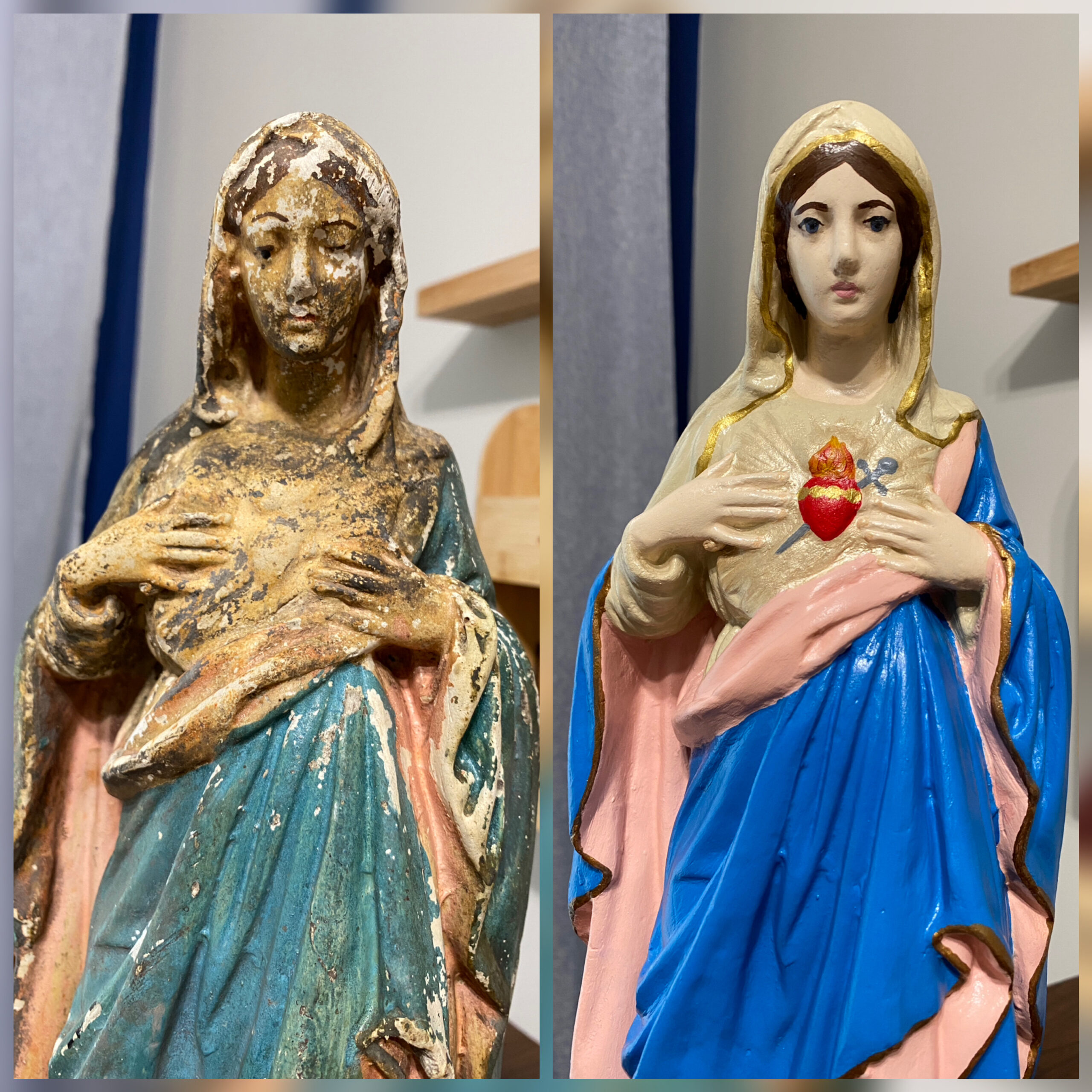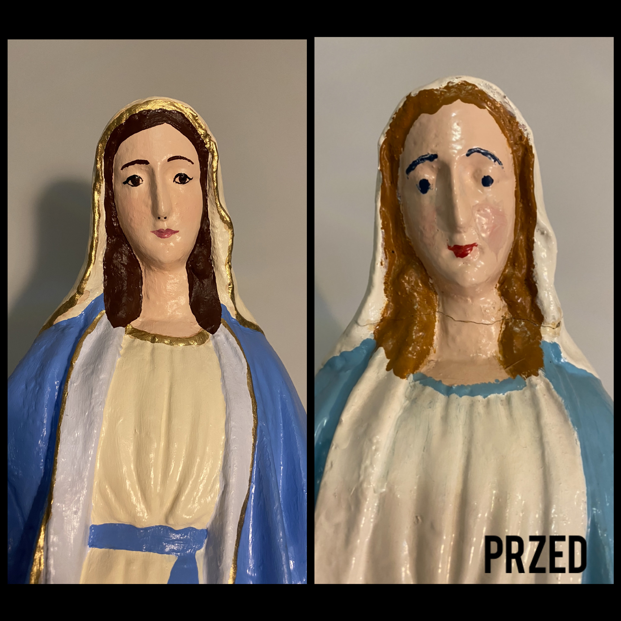 Chętnie jednak odnawiamy stare figury domowe. Najstarsze figurki sakralne, które otrzymaliśmy do renowacji pochodziły z 1935 roku! I były w naprawdę złym stanie technicznym, nie mówiąc już o wizualnym. Poniżej można obejrzeć przykładowe prace.