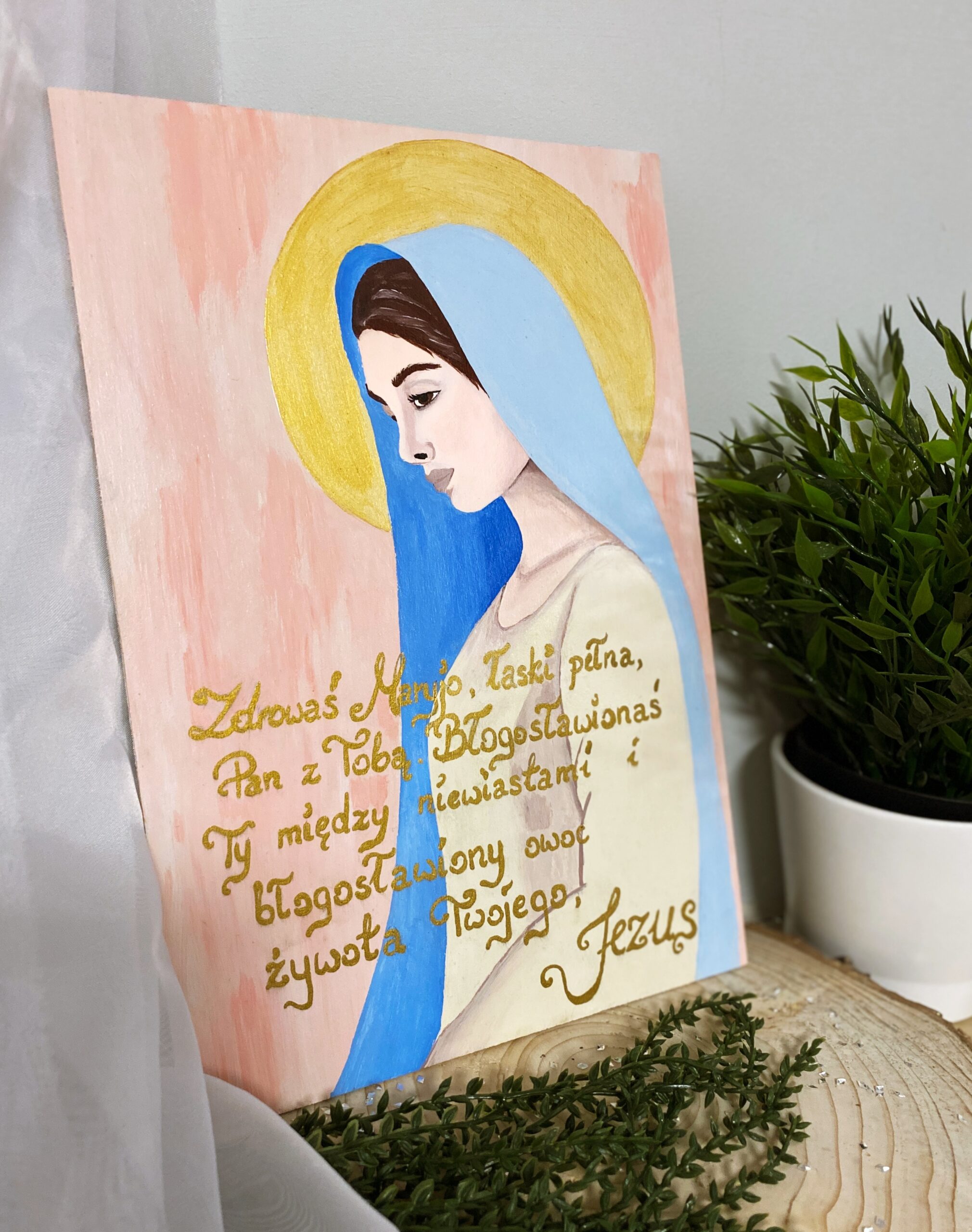 Poszukujesz prezentu na okazje związane z uroczystościami religijnymi? Nie masz pomysłu na prezent na Chrzest, Komunię lub Bierzmowanie? A może po prostu poszukujesz wystroju nowo udekorowanego pokoju dziecka? Nasz obraz na drewnie Maryja Opiekuna świetnie sprawdzi się w tej roli! Maryja zapewni opiekę nie tylko nad pojedynczym pokojem dziecka, ale również nad całym domem, w którym zawiśnie. Spodoba się nie tylko dzieciom ale również młodzieży czy nawet dorosłym. Spraw komuś bliskiemu niespodziankę w postaci naszego przepięknego malunku!