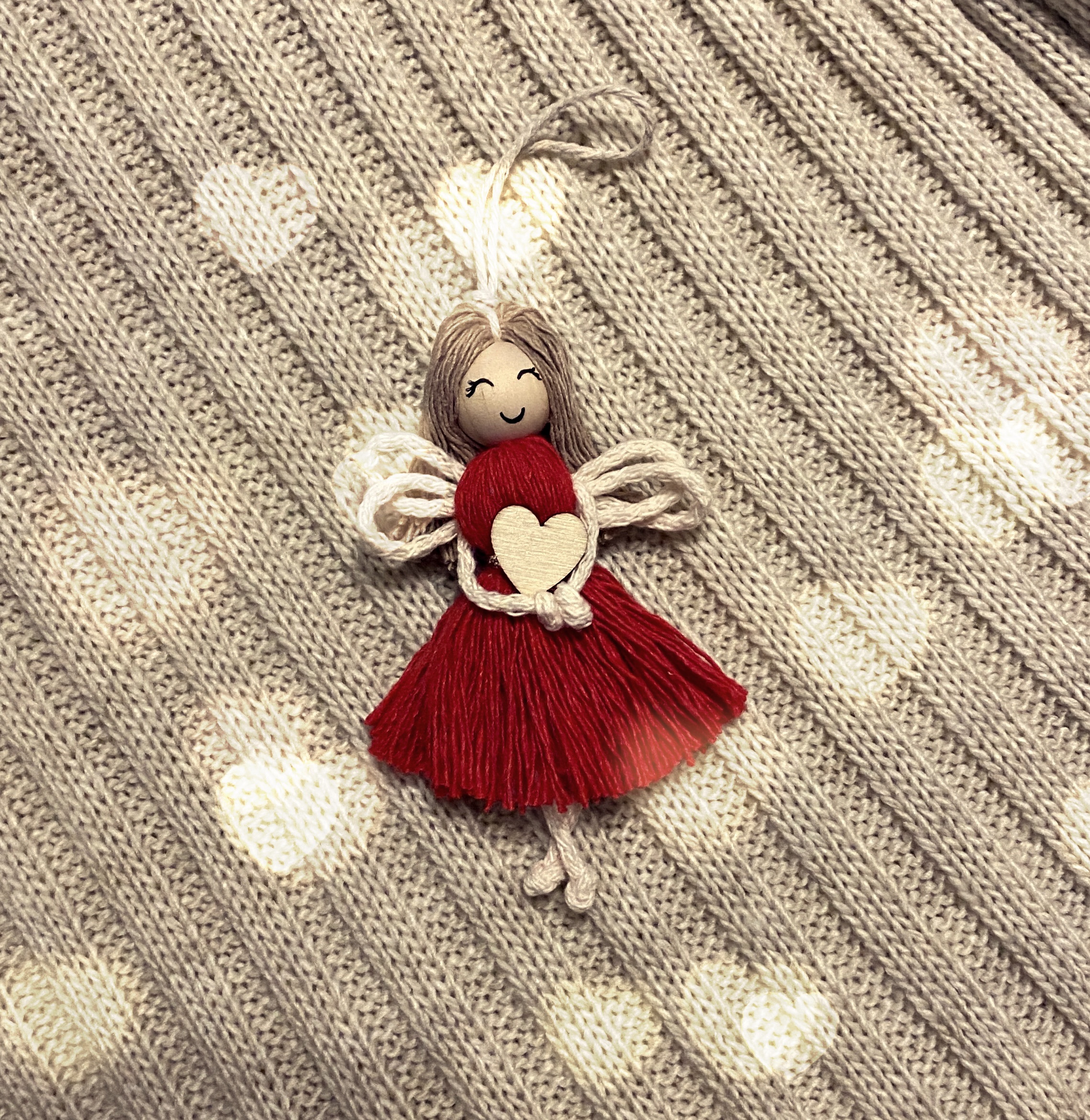 Mały Aniołek Miłości na Walentynki – Ręcznie pleciona Makrama