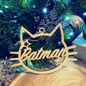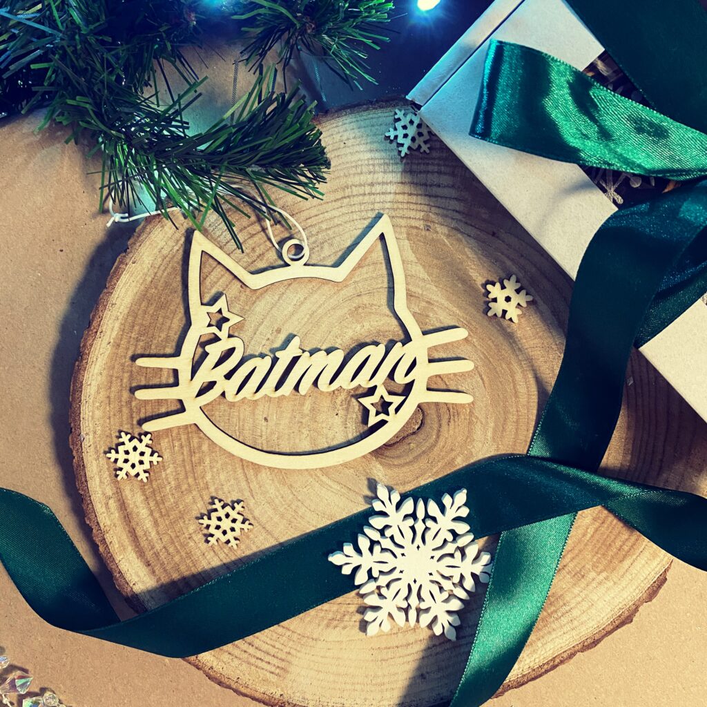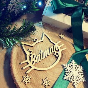 Świąteczna Drewniana Naturalna Zawieszka z Imieniem Kotka