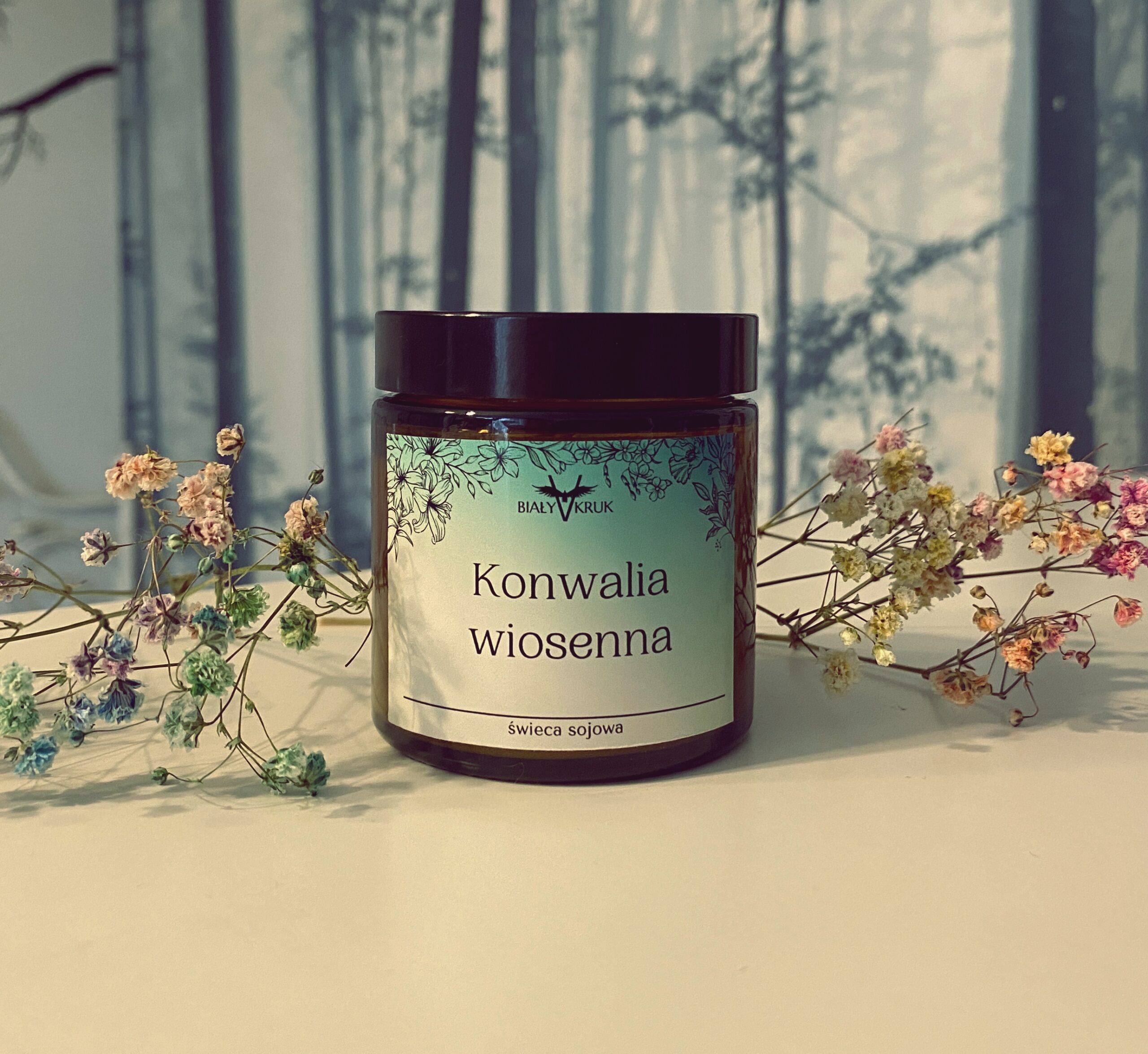 Konwalia Wiosenna – świeca sojowa 120ml to jednocześnie zapach, który jest przyjemny, świeży i kwiatowy, a także ma właściwości lecznice – wspiera pracę układu oddechowego.